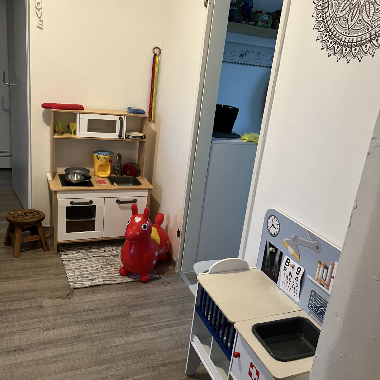 Ein kleiner Einblick in unsere Räumlichkeiten.Der Betreuungsbereich umfasst circa 60qm, welche sich erschließen aus Wohnzimmer, Spielzimmer, Kinderzimmer meines Sohnes, Küche und Flur.